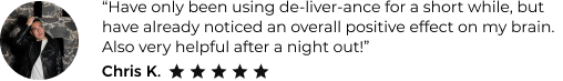 “Have only been using de-liver-ance for a short while, but have already noticed an overall positive effect on my brain. Also very helpful after a night out!”